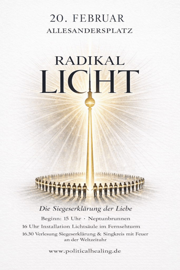 Wir treffen uns am Freitag den 20. Februar am Allesandersplatz zu einem historischen Akt – nicht nur um Licht zu produzieren, sondern um das neue Zeitalter gemeinsam einzuläuten und den Sieg des Lichts in unseren Herzen zu erklären🫶🙏❤️